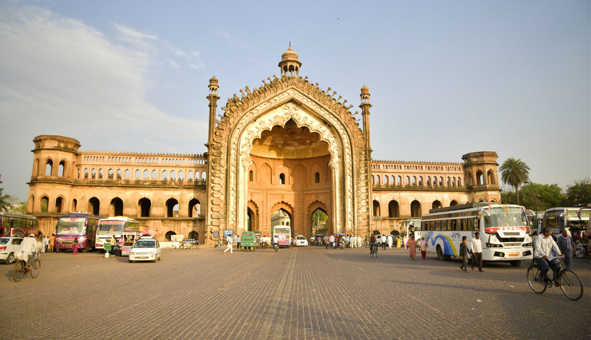 It is a huge ornate structure, marked by an eight faceted chhatri in its uppermost part. In earlier times it was used to mark the entrance to the Old Lucknow City. It is now adopted as a symbol of the city of Lucknow.