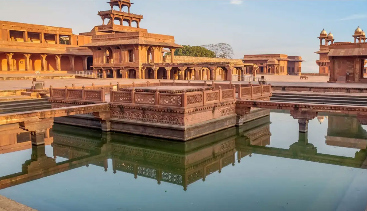 By 1568, Akbar has secured his empire but his only grief was that he had no son and heir. His search for blessings for the birth of a successor brought him to the Sufi mishit Salim Chishti, who lived in Sikri village. The Saint prophesied the birth of three sons and soon Prince Salim, who later became Emperor Jahangir, was born. To express his gratitude Akbar decided to build Imperial residence in Sikri, which would function as a joint capital with Agra. He also named the new city as Fatehpur Sikri. Akbar was keen builder and the plan of Fathepur Sikri reveals and architectural mastermind at work. Researchers have established that it was planned on definite mathematical grid.